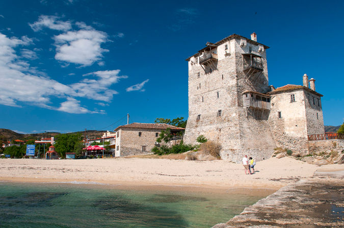 Monastery of Saint Panteleimon. Mount Athos or Agion Oros, as it is locally known, is the oldest surviving monastic community in the world. It dates back more than a thousand years, to Byzantine times. It is a unique monastic republic, which, although part of Greece, it is governed by its own local administration. Halkidiki is a peninsula in the shape of a hand with 3 fingers (Kassandra, Sithonia, Athos), in the north of Greece. The peninsula is lined with 550 km of white sandy beaches which are backed by rocky forested hills and the clear blue and turquoise waters of the Aegean Sea.